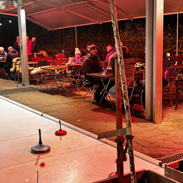 Das Highlight: Eisstockschießen vor der Kulisse eines idyllischen Gartens in Dresden. Der Garten ist geöffnet, für Speisen und Getränke ist gesorgt, ein Tisch kann auf Wunsch zusätzlich reserviert werden. Auch im Winter 2025/26 bleibt der Garten geöffnet und schafft mit besonderer Atmosphäre einen Rahmen, der jedes Event unvergesslich macht.