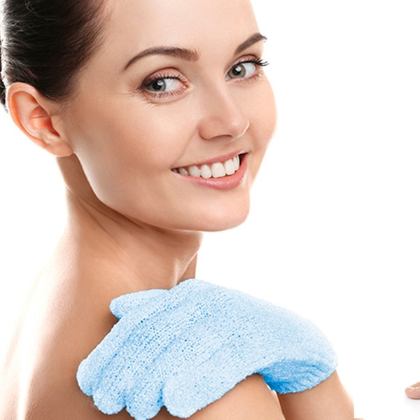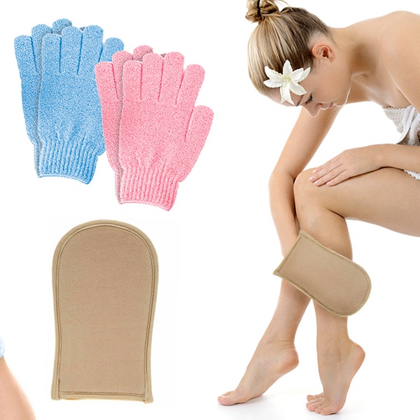 Die Peeling-Handschuhe entfernen die abgestorbene Haut und machen sie schmeidig