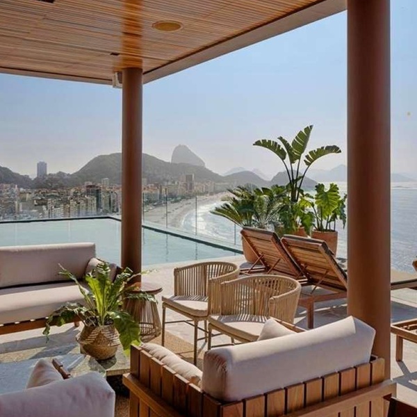 Das geräumige, komfortable und elegante Superior Zimmer mit Meerblick ist mit einem Kingsize-Bett oder zwei Einzelbetten sowie einem Zusatzbett ausgestattet und bietet Platz für zwei Erwachsene und ein Kind. Der Balkon mit seitlichem Meerblick öffnet sich zum Strand von Copacabana.