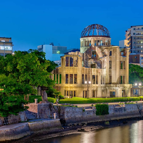 Hiroshima, die von der Atombombe des Zweiten Weltkriegs gezeichnete Stadt, vermischt Moderne und historische Spuren. Der Genbaku-Dom, ein ehemaliger Ausstellungspalast, von dem nur noch die Überreste erhalten sind, lässt Sie in eine einzigartige Atmosphäre eintauchen. Verlängern Sie Ihren Besuch im Museum des Friedensdenkmals mit seinen ergreifenden Zeugnissen. Besuchen Sie den Garten Shukkei-en und die Burg von Hiroshima, bevor Sie die Atmosphäre mit der lokalen Spezialität Okonomiyaki ändern. Für einen Tapetenwechsel geht es auf die Insel Miyajima. Machen Sie ein Foto vor dem berühmten Torii im Wasser des Itsukushima-Schreins, der zum UNESCO-Weltkulturerbe gehört. Beobachten Sie, wie die Hirsche in freier Wildbahn um Sie herum streifen. Betrachten Sie das Panorama des Montains Misen sowie des Daishō-in-Tempels mit seinen buddhistischen Statuen.