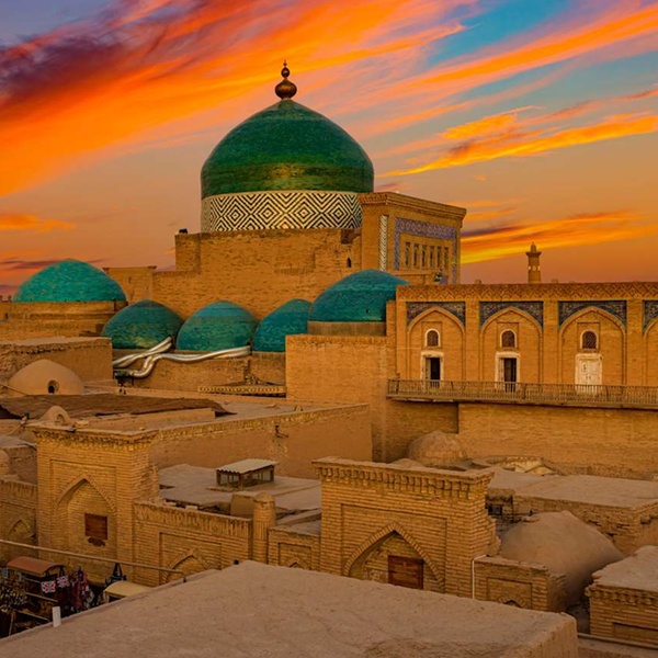 Die Museumsstadt mit ihren rosa Lehmwällen: Ganztägiger Ausflug in die abgelegenste Oase der Seidenstraße, die bis heute unberührt geblieben ist. Heimat von Al Khawarizmi (Vater der Logarithmen) und in der Nähe von Avicenna.
