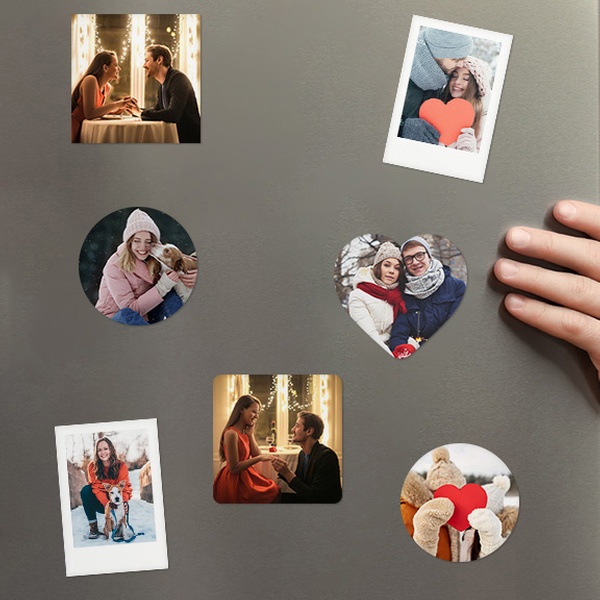 Die Foto-Magneten sind in verschiedenen Designs erhältlich. Ob quadratisch, rund, Retro-Design oder Herzform: Eine Kombination aus allen Formen gibt unbegrenzte Gestaltungsmöglichkeiten für spannende Erinnerungsmomente als stilvolle Kreativ-Accessoires.