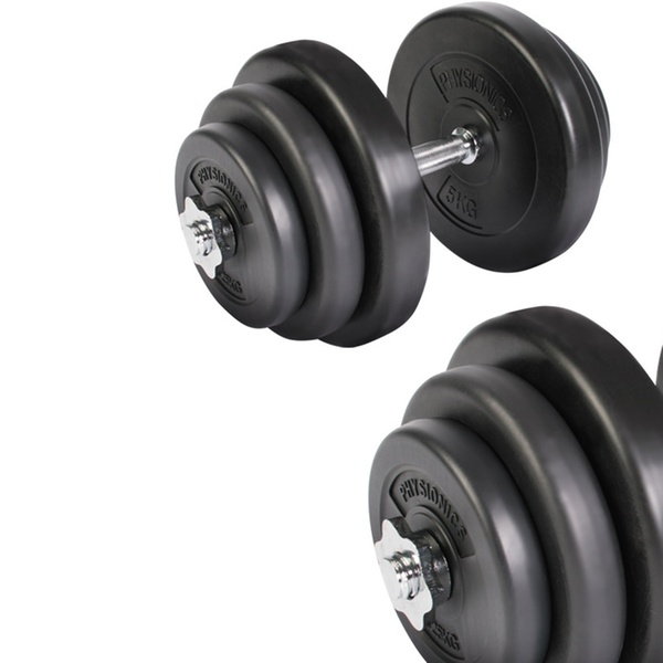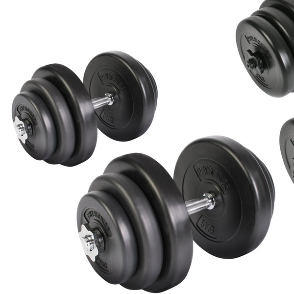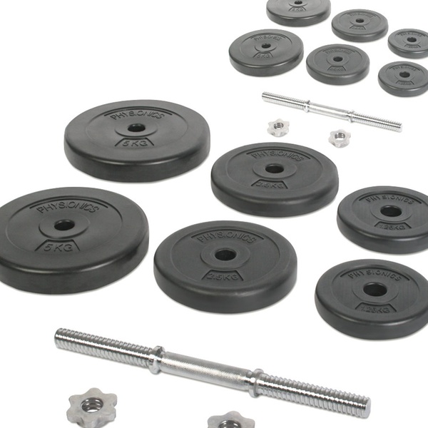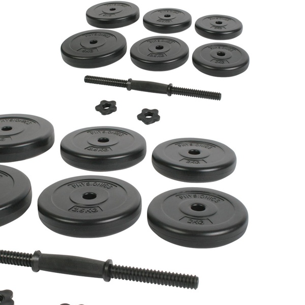 Kurzhantel-Set mit 2 Stangen, 4 Platten unterschiedlichen Gewichts und Drehsicherungen für effektives Workout und Muskelaufbau daheim
