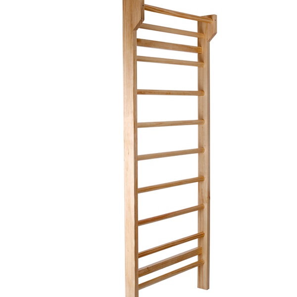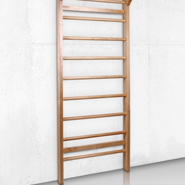 Diese stabile Sprossenwand aus Kiefernholz mit 10 Sprossen eignet sich gut fürs Gymnastik-Training zuhause