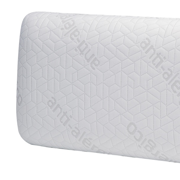 Dieses ergonomische Kopfkissen mit viskoelastischem Schaumstoffkern passt sich den Konturen des Kopfes an und entlastet Druckstellen