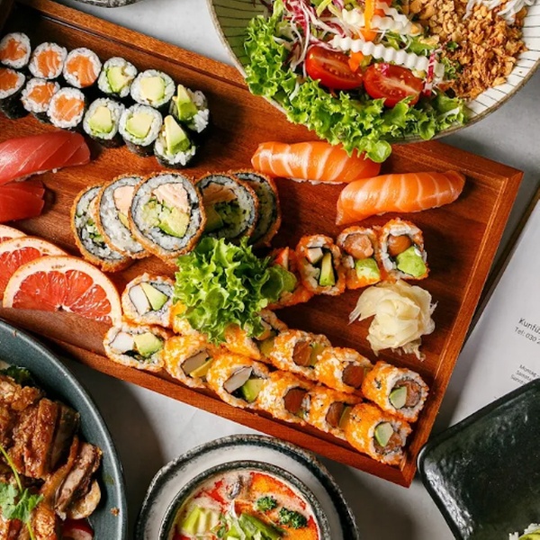 Für Sushi-Liebhaber bietet das Deluxe 3-Gänge-Menü ein echtes Highlight: eine Vorspeise nach Wahl, eine großzügige XXL-Lachs-Sushi-Platte aus hochwertigem Lachs und ein Dessert nach Wahl. Die Menüs sind für 2 oder 4 Personen verfügbar und sorgen für entspannten, hochwertigen Genuss in zentraler Lage - Perfekt für Dates, mit Freunden oder für besondere Anlässe.
