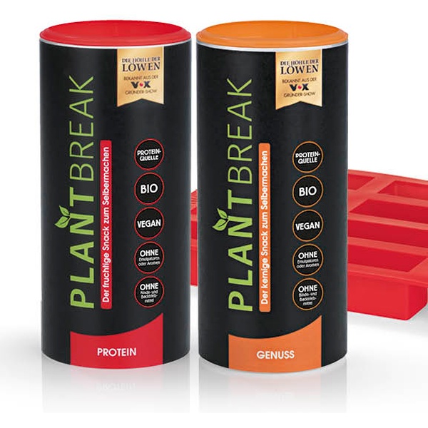 Backform und vegane Backmischungen für je 12 Fitness-Riegel mit Zutaten aus kontrolliert biologischem Anbau