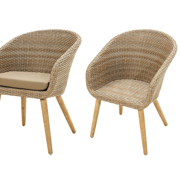 Elegante und praktische Gartenmöbel mit Sitzkissen, aus Akazienholz und langlebigem Polyrattan-Geflecht