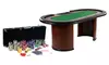 Turniertisch für bis zu 10 Spieler mit gepolsterter Armauflage aus Kunstleder und Filztuch mit 10 Getränkehaltern oder Pokerset im Koffer
