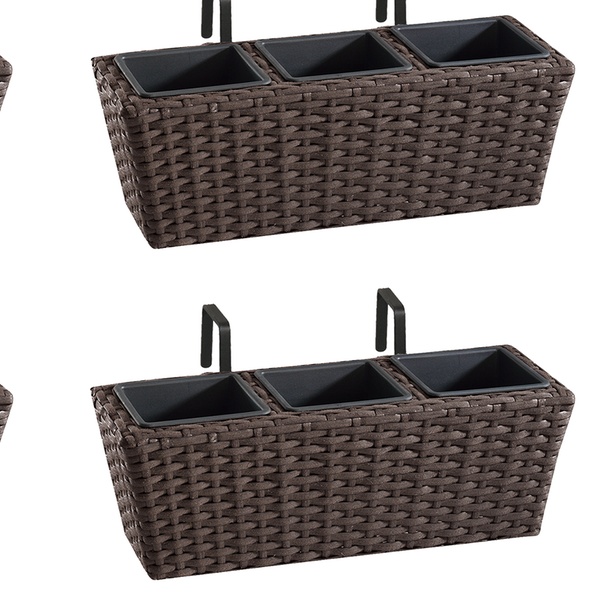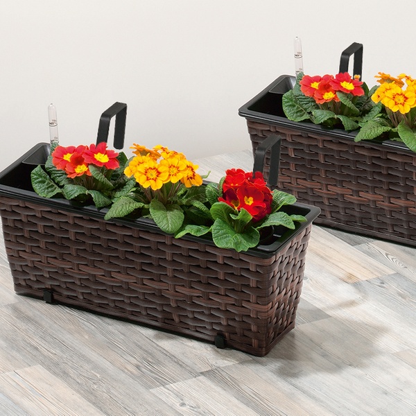 1x Polyrattan-Balkonkasten inkl. Aufhängung und Bewässerungssytem, 80 x 19 x 18 cm für 34,99 € 2x Polyrattan-Balkonkasten inkl. Aufhängung und Bewässerungssytem, 50 x 19 x 18 cm, 39,89 € 2x Polyrattan-Balkonkasten inkl. Aufhängung und Bewässerungssytem, 60 x 19 x 18 cm für 44,99 € 2x Polyrattan-Balkonkasten inkl. Aufhängung und 3er Einsatz, 47 x 17 x 15 cm, für 34,99 € 4x Balkonkasten Polyrattan inkl. Aufhängung, 47 x 17 x 15 cm, für 49,99 €