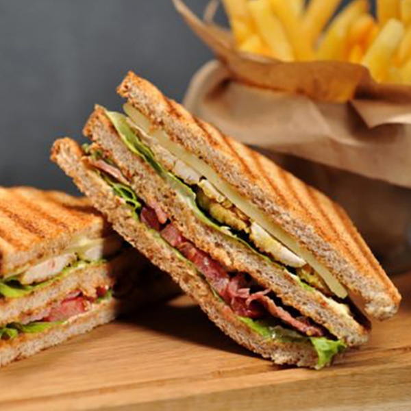 - Club Sandwich Hühnchen, Bacon, Salat, Tomate, Mayonnaise