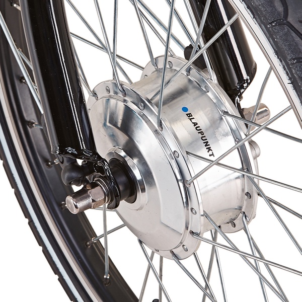 - Motor: BLAUPUNKT Vorderradmotor, 36 Volt, mit Anfahrhilfe Sattel: PROPHETE Trekkingsattel