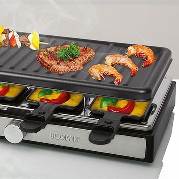 Raclette-Grill für 8 Personen zum Grillen und Bräunen - Abnehmbare Grillplatte & Antihaftbeschichtung auf den Platten