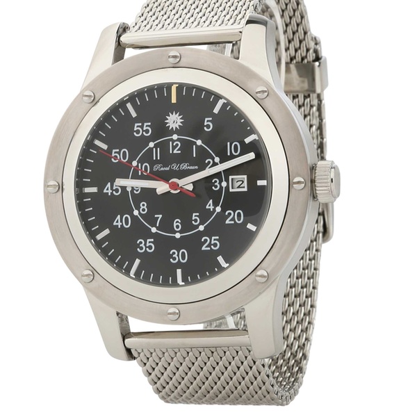 - Gehäuseboden: Edelstahl mit Mineralglas, verschraubt