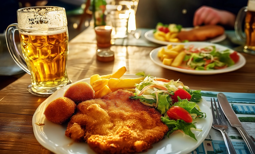 - Schnitzel oder Steak mit Würzfleisch und 1x Bier vom Fass für 1-6 Personen
