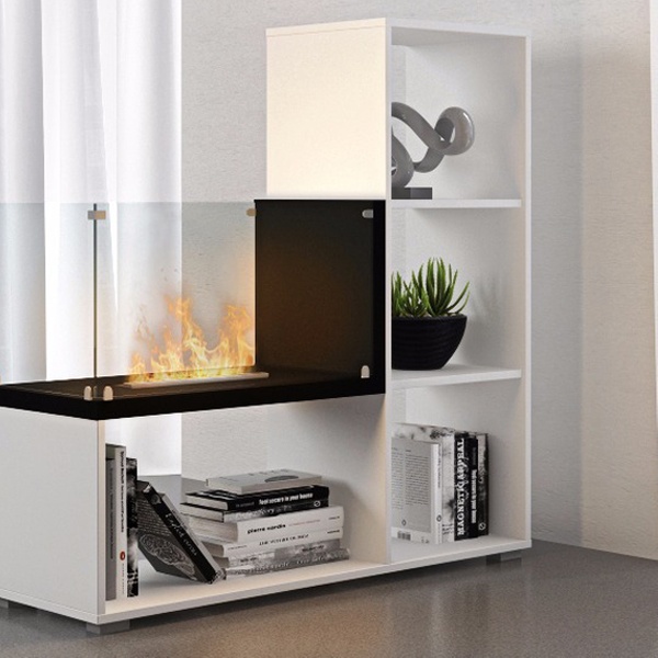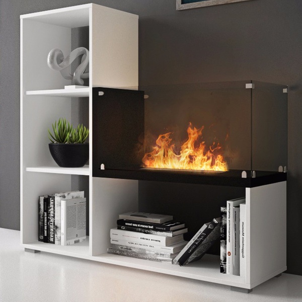 Elegantes Regal in modernem und funktionalem Design mit integriertem Bioethanol-Kamin