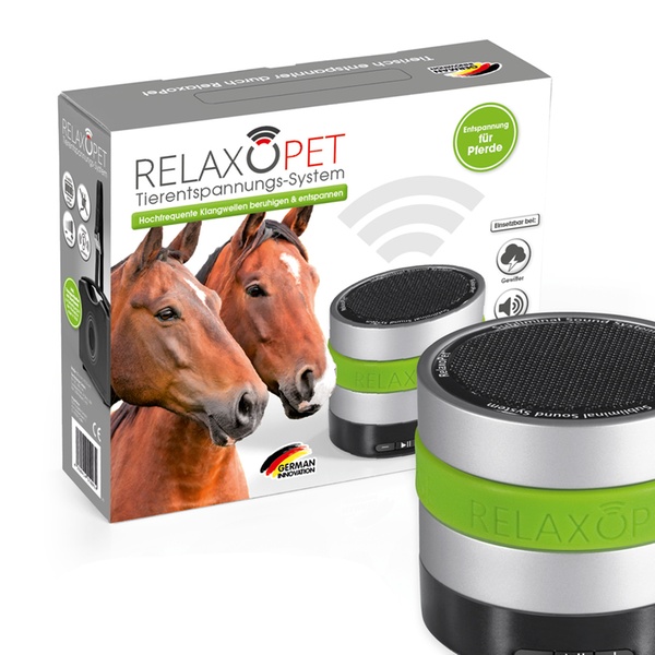 Der Transportweg zu und von einem Turnier ist für manches Pferd der reinste Horror, ein anderes wird schon nervös, sobald sich jemand der Box nähert…In solchen tierischen Stresssituationen kann RelaxoPet Ihrem Pferd helfen. Das kompakte Soundmodul wurde vom Hypnosetherapeuten Frank Bendix speziell dafür entwickelt. Mit hochfrequenten und auf Pferde zugeschnittenen Tönen und Tonfolgen sorgt es für eine bessere Entspannung bei Ihrem Pferd. Bitte geben Sie Ihrem Tier aber etwas Zeit: Für den Entspannungs-Effekt ist eine ausreichende individuelle Eingewöhnungszeit unbedingt notwendig. RelaxoPet kann wahlweise mit hörbarer Entspannungsmusik für den Menschen oder nur mit den ausschließlich für Pferde wahrnehmbaren Klangkompositionen verwendet werden. Für den Einsatz an der Pferdebox, im Transporter oder dem Stall liegt dem Set ein Transportkoffer mit Gurtband bei. Dank einer Öffnung für den Lautsprecher kann RelaxoPet auch direkt darin betrieben werden. RelaxoPet ist kabellos, akkubetrieben und unabhängig von Steckdosen. Die Lautstärke kann an die jeweilige Situation angepasst werden.