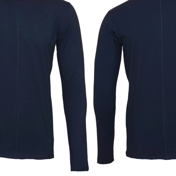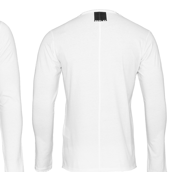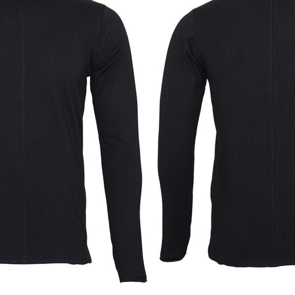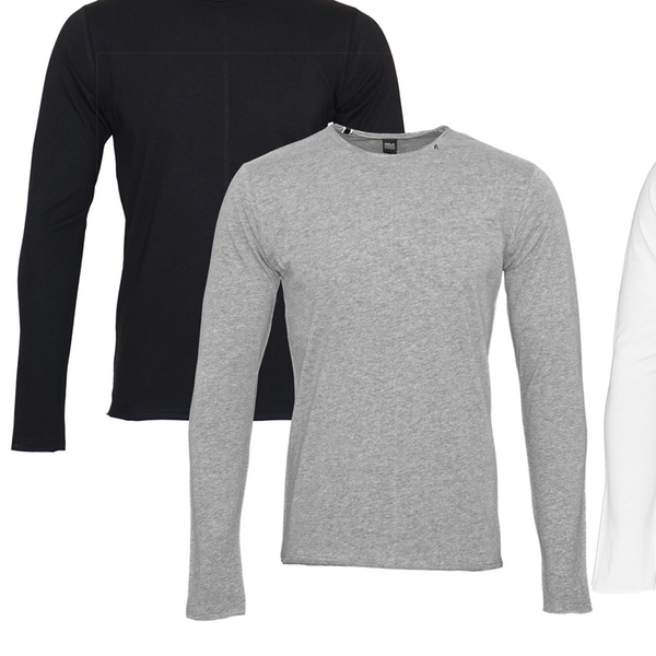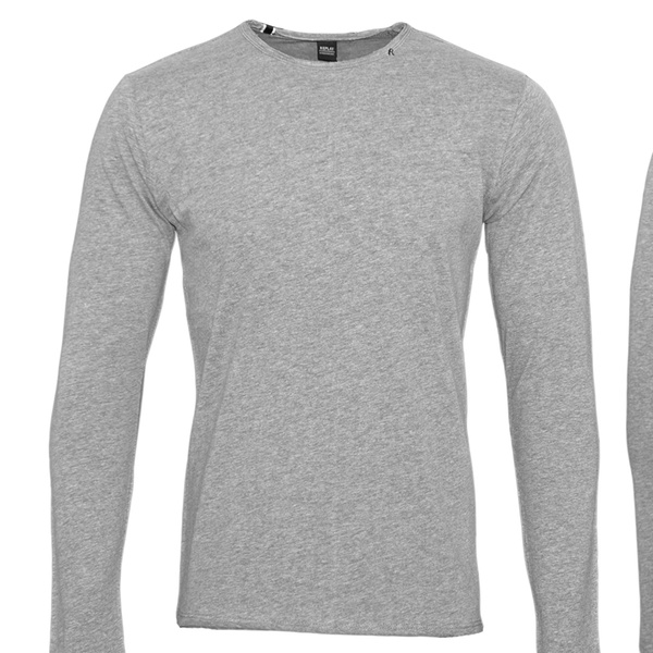Präzise verarbeitetes Langarm-Herren-T-Shirt mit Rundhals, offenen Kanten und normaler Passform