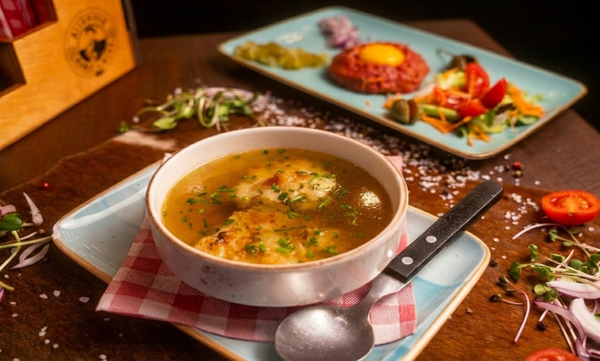 • Kräftige Rindersuppe mit Kaspresskned´l: Rindersuppe mit hausgemachten Käseknödeln