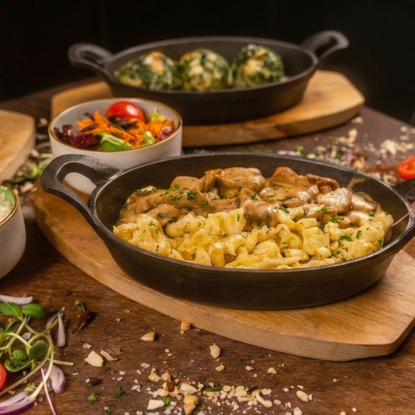 Ob herzhaftes Schnitzel, würzige Kässpatzen oder ein süßer Kaiserschmarrn zum Abschluss – dieses Menü bietet Vielfalt für jeden Geschmack. Die zentrale Lage in Dresden, das gemütliche Ambiente und das flexible Menükonzept machen den Besuch ideal für Paare, Freunde oder besondere Anlässe. Jetzt reservieren und alpinen Genuss erleben.