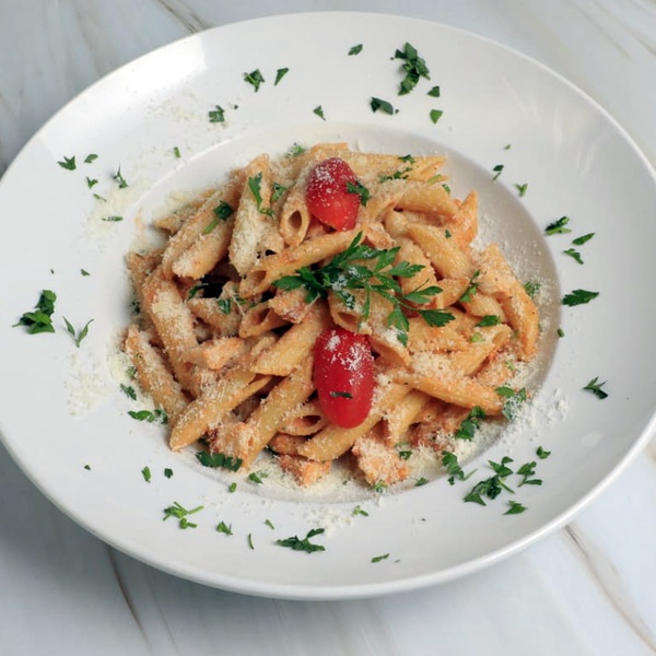 • Penne al Pesto (mit Pesto und Hähnchen)