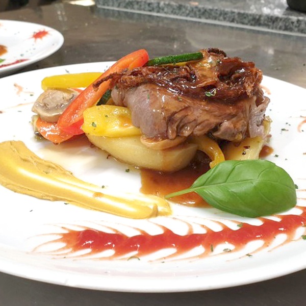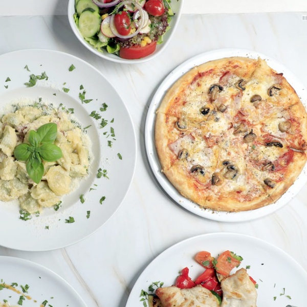 Wähle aus einer Vielzahl verschiedener Speisen, wie Pizza, Pasta, Fleisch-, Fisch- oder Balkan-Spezialitäten, wie bspw.:
