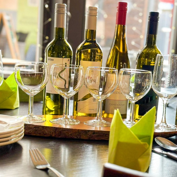 - 4x 0,05 l verschiedener Weinsorten pro Person inklusive 1 l Tafelwasser