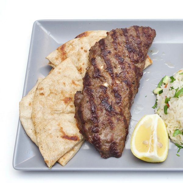 • Souvlaki-Teller: marinierte und gegrillte Schweinespieße