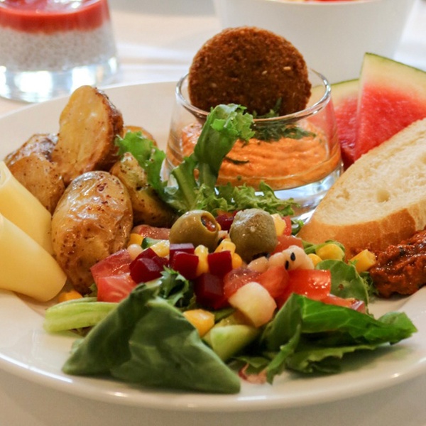 Erlebe ein kulinarisches Erlebnis im Leonardo Royal Berlin Alexanderplatz: Tauche ein in die Vielfalt der Levante-Küche. Die levantinische Küche steht für Geselligkeit und gemeinsames Genießen. Unser Brunch bietet eine Auswahl an traditionellen Gerichten, die mit frischen Zutaten zubereitet werden. Genieße würzige Falafel mit Paprikacrème, mariniertes Maishähnchen, cremige Süßkartoffelsuppe oder gegrilltes Gemüse der Saison. Freue dich auf unvergessliche Aromen und ein Geschmackserlebnis.