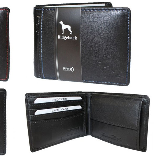 Elegante Geldbörse aus Leder mit 4 Fächern für Kreditkarten, Visitenkartenhalter, 2 Taschen sowie RFID-Schutz