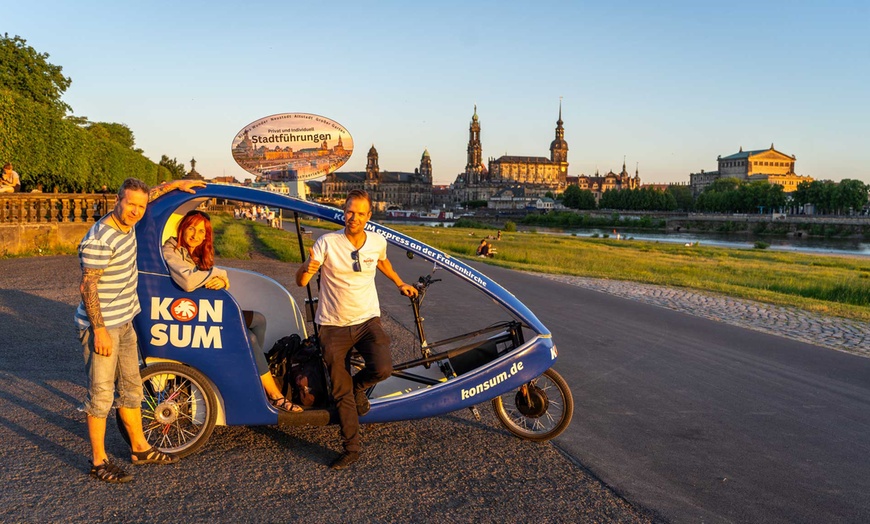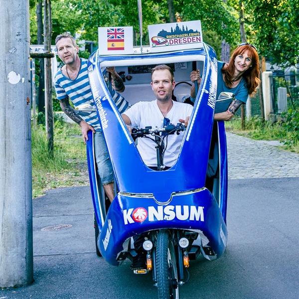 Erlebe Dresden bequem und nachhaltig mit individuell geführten Rikscha-Touren durch Altstadt, Neustadt oder entlang der Elbe