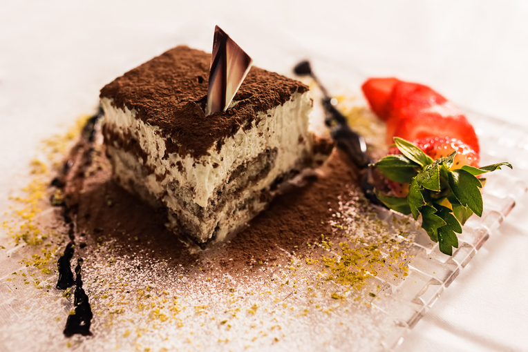 • Tiramisù: In Kaffee getränkter Biskuit mit Mascarpone-Crème