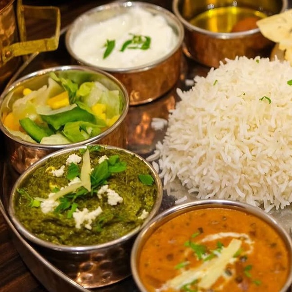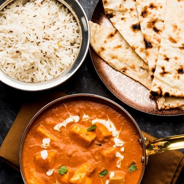 Genieße frisch zubereitete indische Vielfalt: Von würziger Chicken Vindaloo bis Palak Paneer, hausgemachtem Dessert & Mango-Likör inklusive