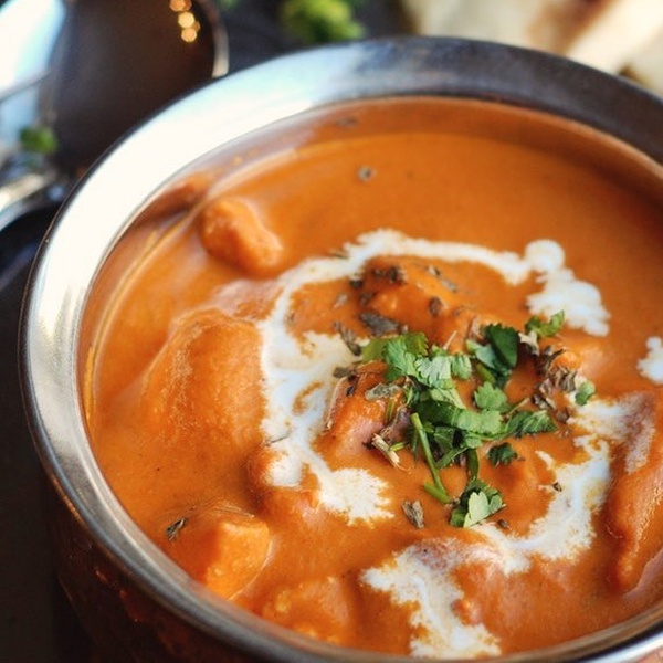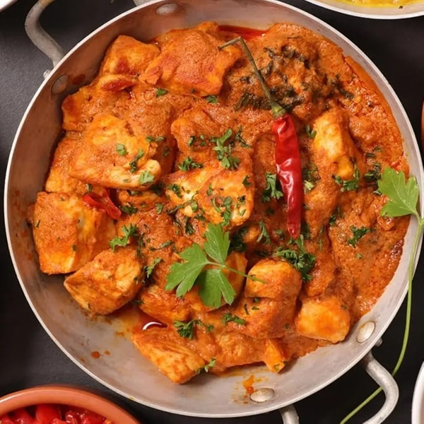 • Chicken Tikka Masala: In Tandoor gegrilltes Hühnerfleisch in Masalasoße