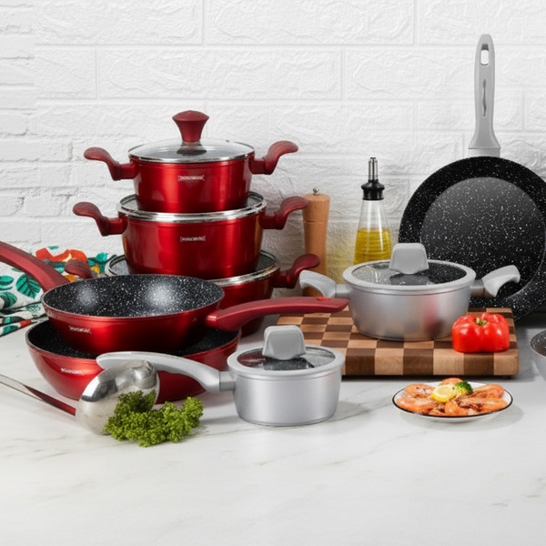14-teiliges Kochgeschirr-Set mit Marmorbeschichtung