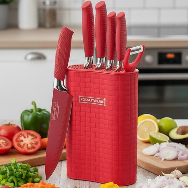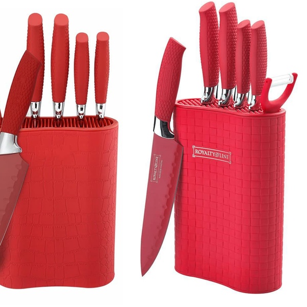 Angebot von Groupon Royalty Line 7-teiliges Edelstahl-Messer-Set mit Messerblock, verkauft von LE PETIT PATRON