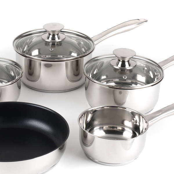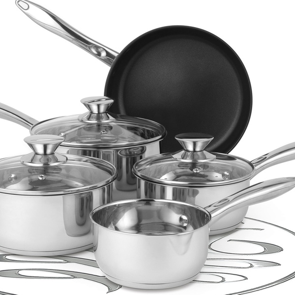 Kochgeschirr-Set mit 3 Kochtöpfen mit Deckeln, 1 Kasserolle und 1 Bratpfanne geeignet für alle Herdarten und die Spülmaschine