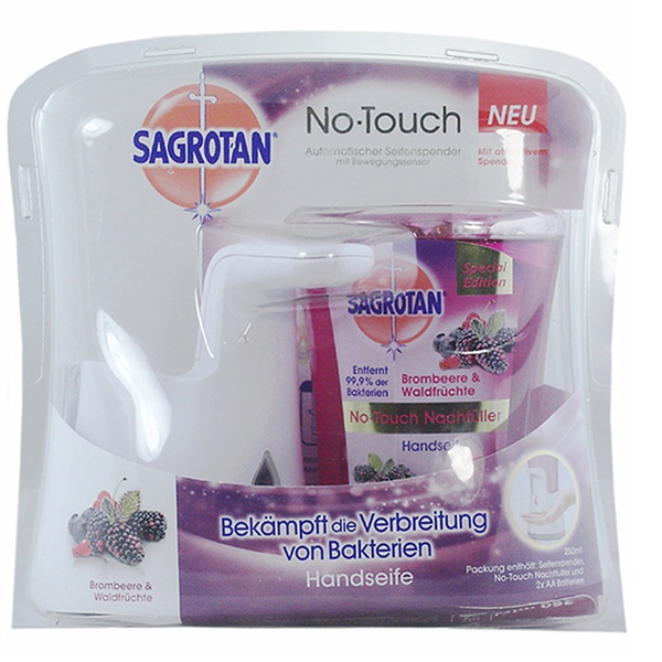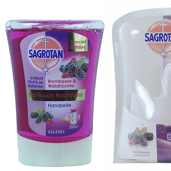 - 1x Sagrotan No-Touch Automatischer Seifenspender für mit Brombeere & Waldfrüchte Nachfüller 7,98 €