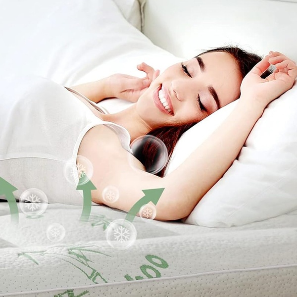 - Die Bambusfasern in der Matratzenauflage tragen zur Temperaturregulierung bei und halten Sie im Sommer kühl und im Winter warm.