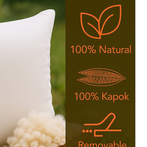 • Füllung aus 100 % natürlicher Kapokfaser, gewonnen aus den Schoten des Kapokbaums