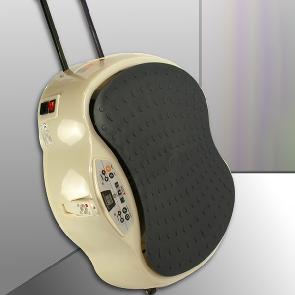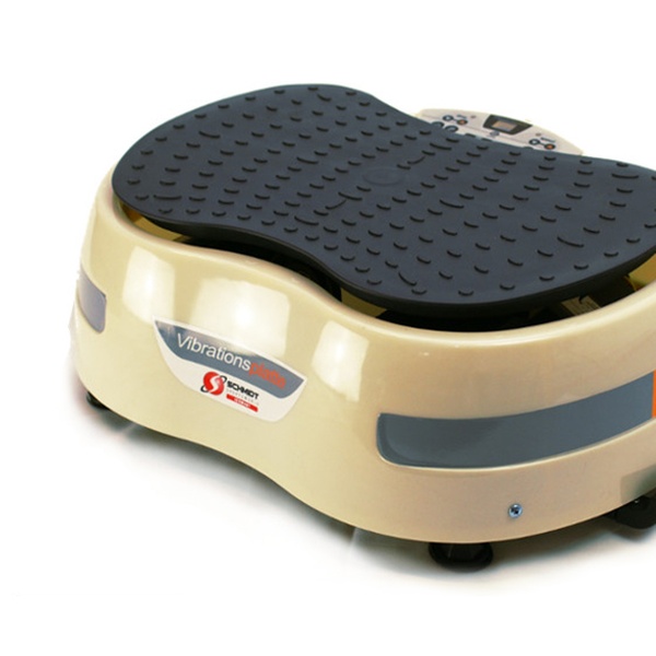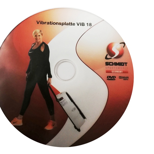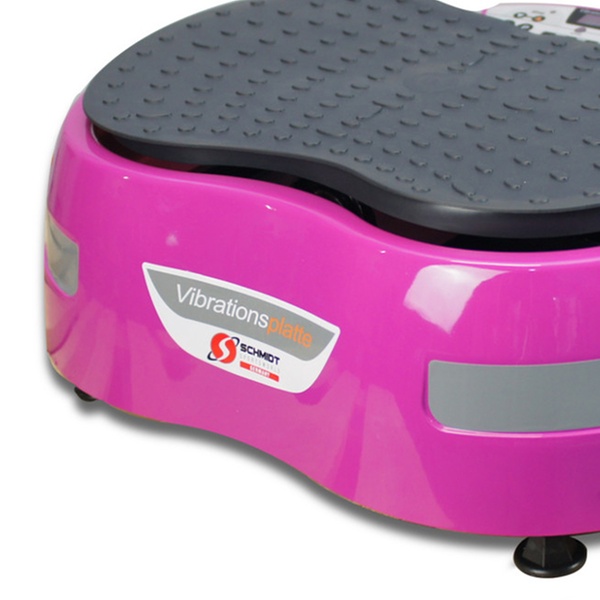 Stabile Vibrationsplatte mit großer Trittfläche für einen sicheren Stand, geräuscharmem Betrieb und DVD mit Übungen