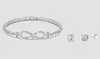 Ein Set, bestehend aus einem Unendlichkeitsarmband und passenden Ohrsteckern mit funkelnden Swarovski®-Kristallen