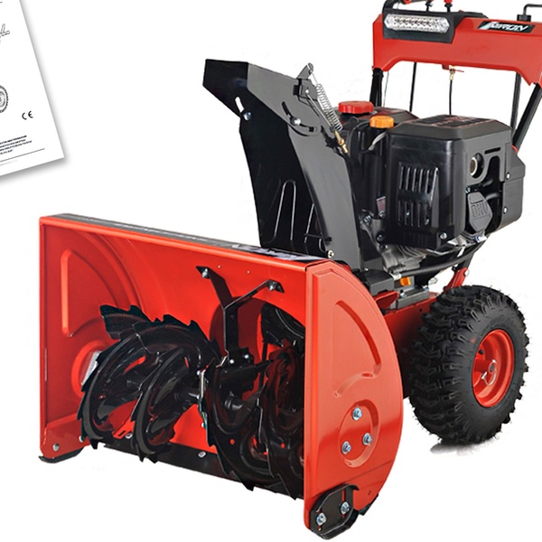 Diese Benzin-Schneefräse hat 1 Zylinder mit 13 PS Motor, einen Elektrostarter und LED-Scheinwerfer