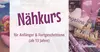 - Terminvereinbarung erforderlich online auf https://schnittverhext.de/kurse-naehtreffen/naehkurs-ab-ca-13-jahre/ mit Angabe des Gutschein-Codes.