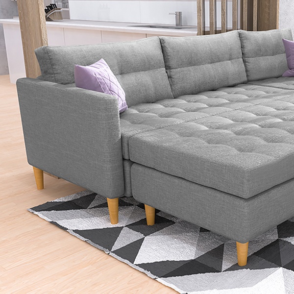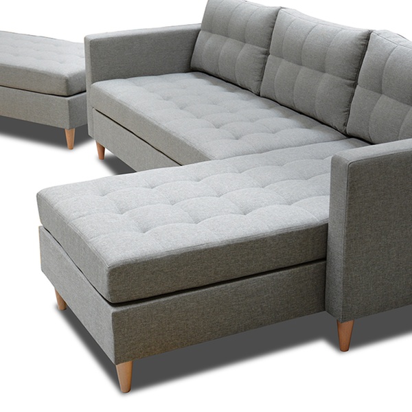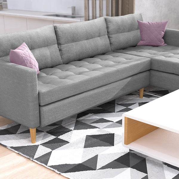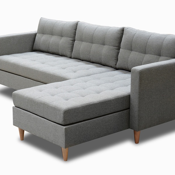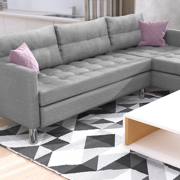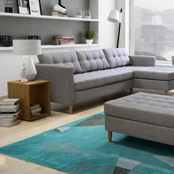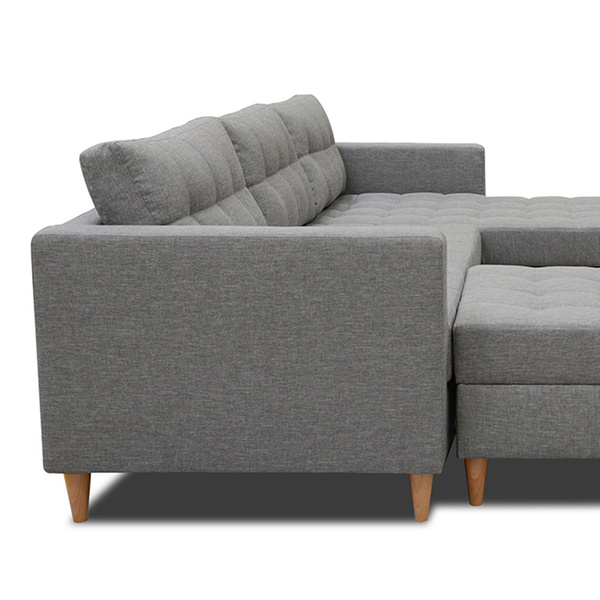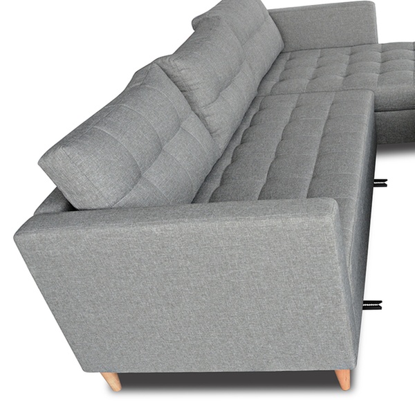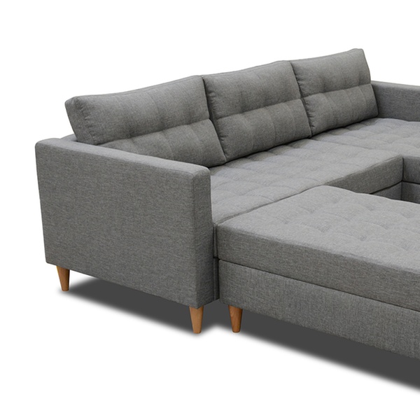Ein funktionales und modernes Sofa mit Schlaffunktion und viel Stauraum, wahlweise mit großem Hocker