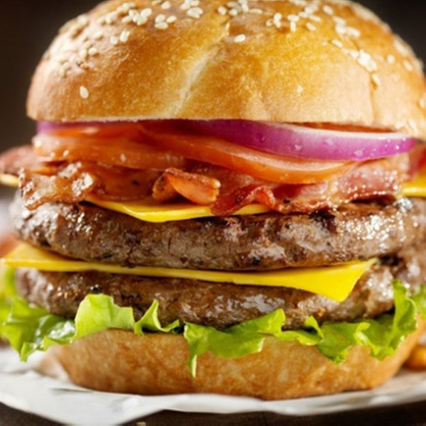 Zu jedem Burger werden Pommes mit Mayo und Ketchup serviert.