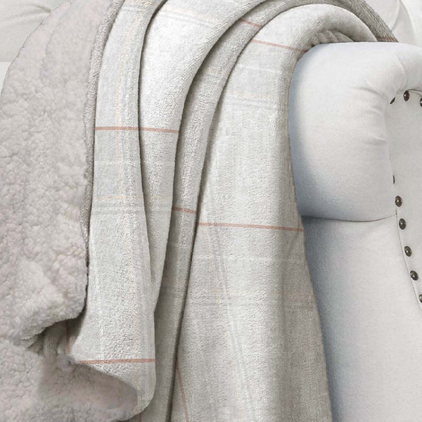 Diese Sherpa-Decke mit modernem Design bietet kuschelige Wärme für entspannte Abende