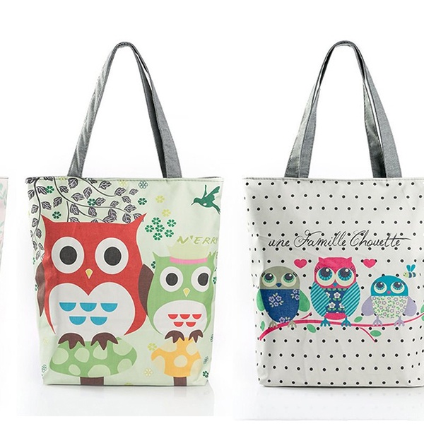 Geräumige Shopping-Tasche mit dekorativen Eulen-Motiv