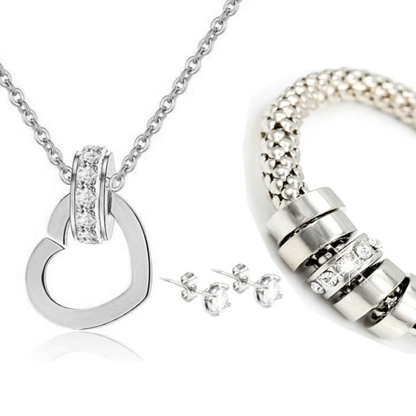 Dieses Set besteht aus einem glänzenden Armband, einer Kette sowie einem Paar Ohrringe die mit Swarovski®-Kristallen verziert sind
