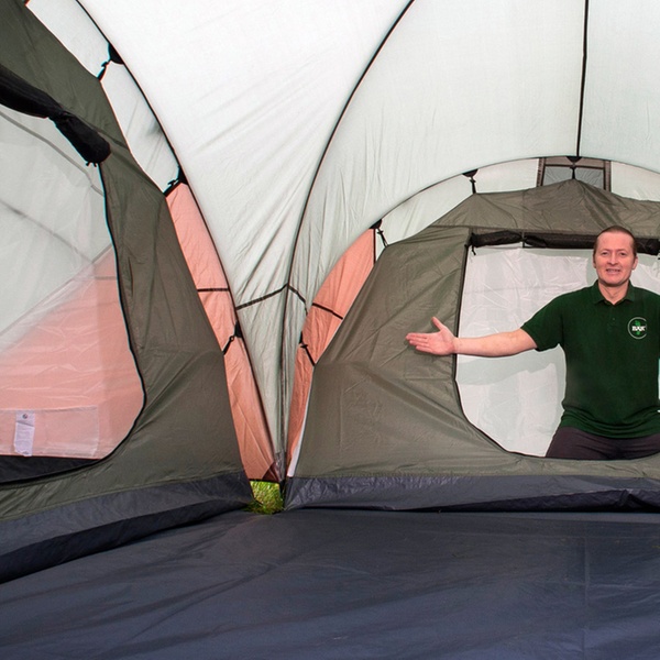 - Geräumiges 6-Mann Kuppelzelt mit einer bequemen Stehhöhe von 195 cm, viel Platz im Wohnbereich für Gepäck und Freunde und drei Innenzelten für einen erholsamen Schlaf